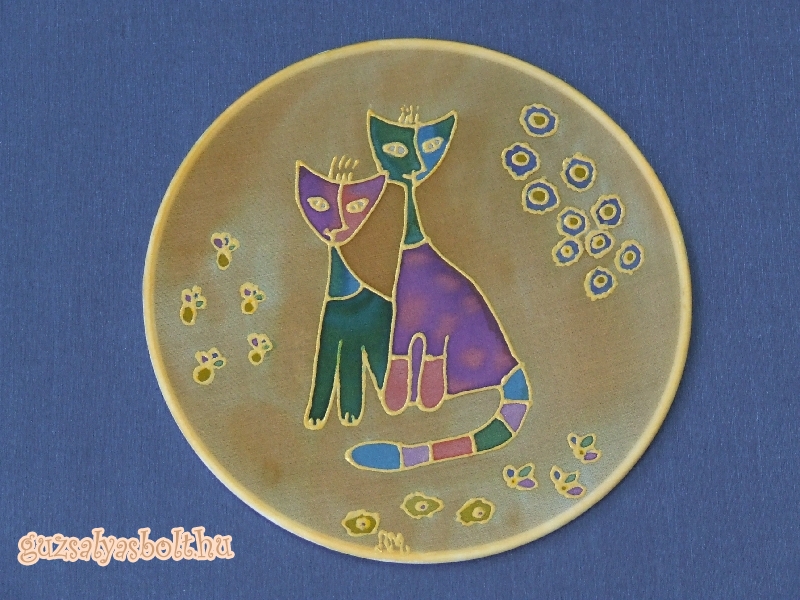 15 cm átmérőjű kézzel festett hernyóselyemkép
