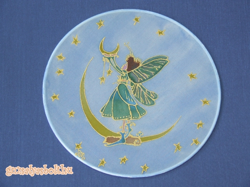 20 cm átmérőjű kézzel festett hernyóselyemkép